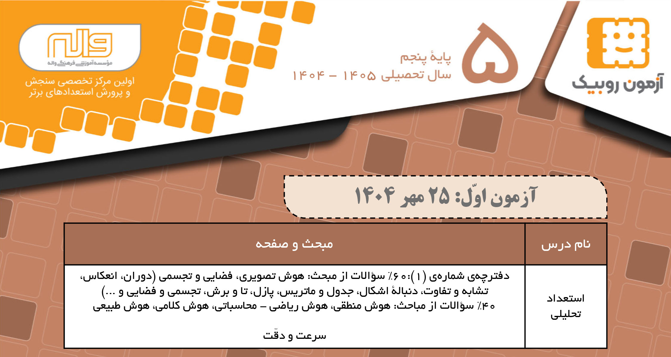 روبیک , دبستان , پایه پنجم , بدون رشته